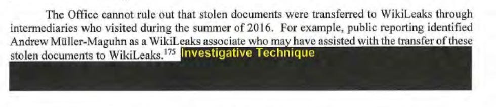 July 14: Two things happenon the same day : 1) Assange gets "big archive" of DNC emails from Russians. (Remember that Seth Rich was murdered on July 10 at 4:20 AM. We are just noting that again for the record.) 2) Assange has personal meeting with Andrew Müller-Maguhn and Bernd Fix, two German hackers. Hello, Andrew Müller-Maguhn, whose name is in the Mueller Report and whose name you bookmarked in your brain a few grafs ago! CNN reports that the UC Global investigation found that Müller-Maguhn and Assange met "at least 12 times" before the election.