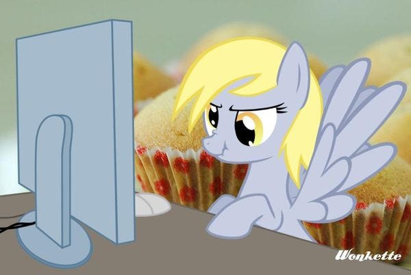 [ Wonkette Comments Policy / Disqus / Pony image via Derpibooru.org, background muffins by Marufish [modified]; Creative Commons license 2.0. ]