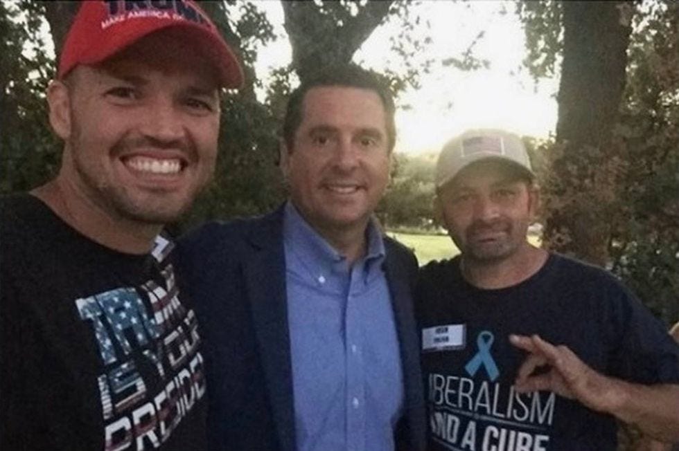 Bergquam hosts an internet TV show called "Frontline America" (which is exactly like the PBS show "Frontline," but not at all like that) and claims to have been doing important journalism. Also involved with this "journalism" was Josh Fulfer, best known for posing in a picture with Bergquam and Devin Nunes doing the "OK" hand gesture, widely considered to be some white supremacist bullshit.