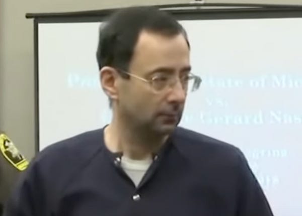 It would be one thing if this were an incredibly rare occurrence in our system instead of an ongoing issue within it — if it happened specifically because this guy was Larry Nassar. But it's not, and it probably didn't.