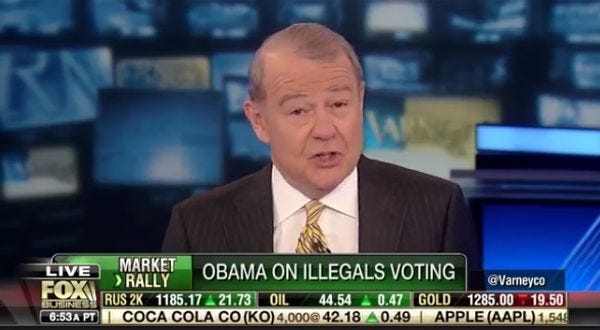 Fox Business's lying crapsack Stuart Varney is very upset the lamestream media has not picked up his lying crapsack of a story about how Barack Obama is encouraging undocumented immigrants to go ahead and vote, because shouldn't that be a huge story, the President of the United States encouraging illegal voting by illegal aliens????? It would indeed be a very shocking story if Barack Obama had actually said that! Except of course for how Obama said nothing of the sort, and the lying crapsacks at Fox Business instead edited some video to make it look like Obama was telling those terrible illegals to go out and vote.