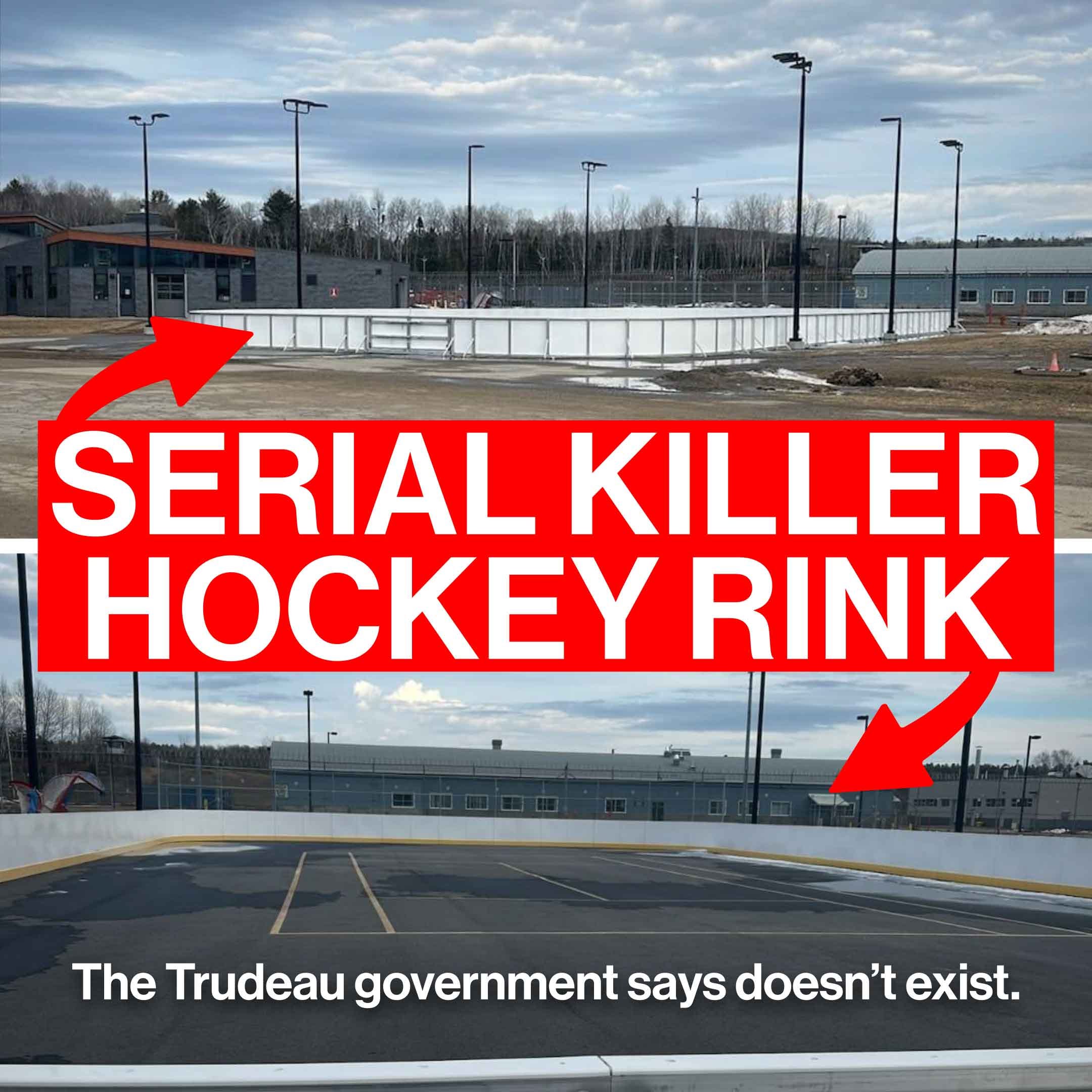 Jesus wept. “The Trudeau government says doesn't exist.” Nobody is saying it doesn't exist, only that it's currently just some boards assembled around a piece of pavement. Prison officials declined to say if this was due to safety concerns, budget cuts, a casualty of COVID or simply because violent sex offenders — people who don't play well with others by definition — don't want to play hockey with others either. Just because Jason Voorhees likes to wear an old-school goalie mask doesn't mean they're all into the game.