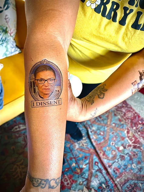 LOL. Like I'm going to buy that RBG tattoo. Anyone can see the problem with a temporary tattoo of RBG saying, "I dissent!"
