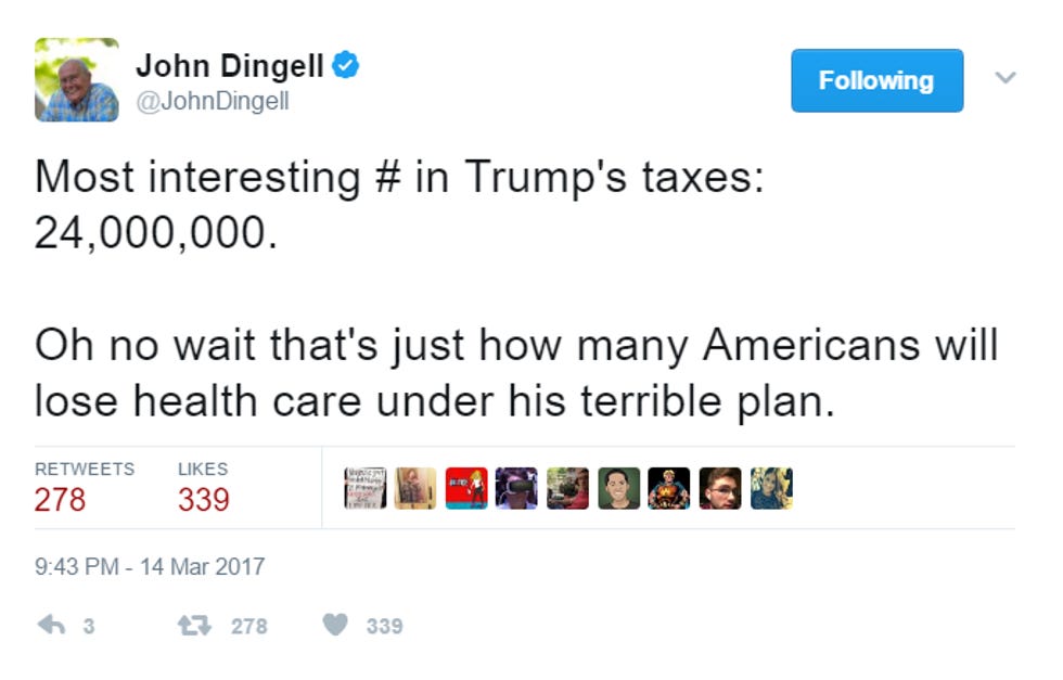 9: 45:Best former congressional tweeter of all time John Dingell, everyone!