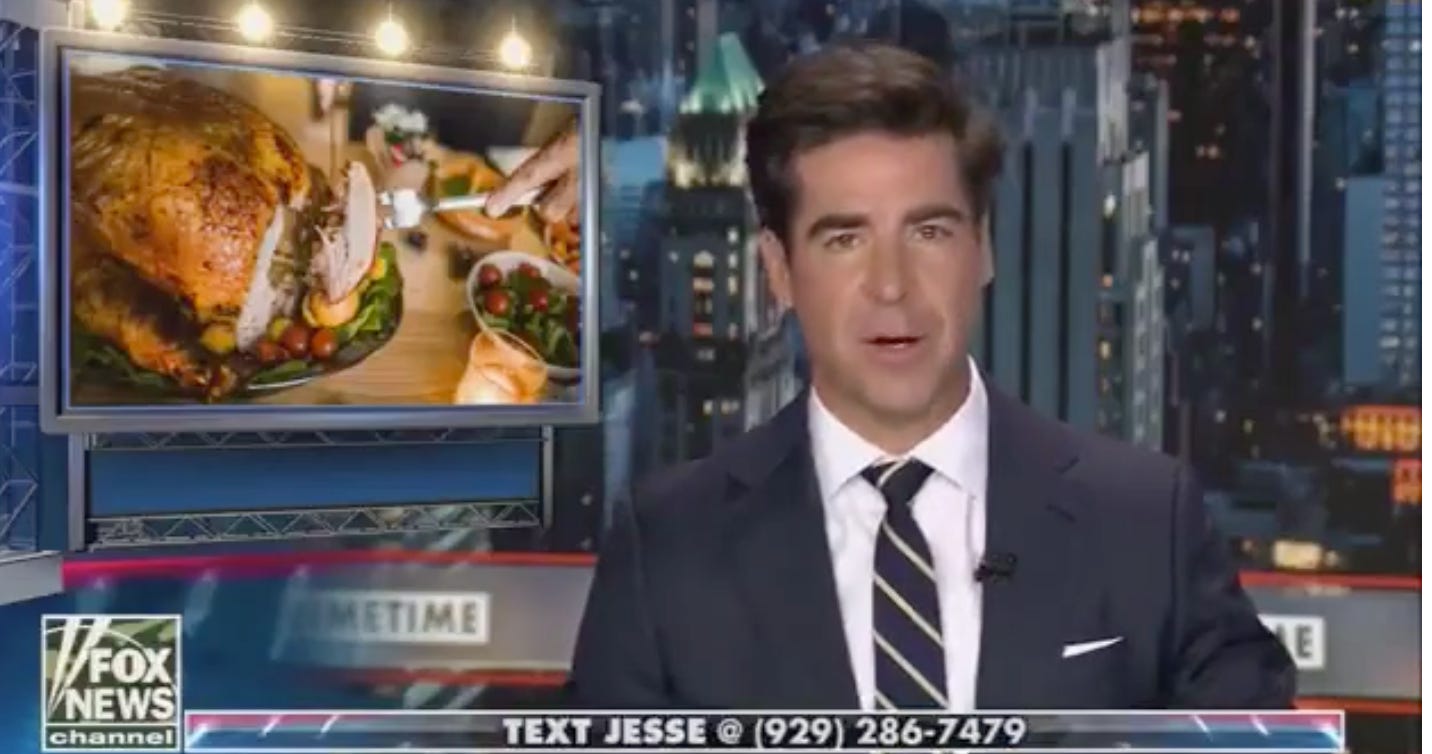 Anyway, did you get invited to Jesse Watters’s mom’s house for Thanksgiving? If so, don’t gloat about it, because he doesn’t deserve to know what he’s missing.