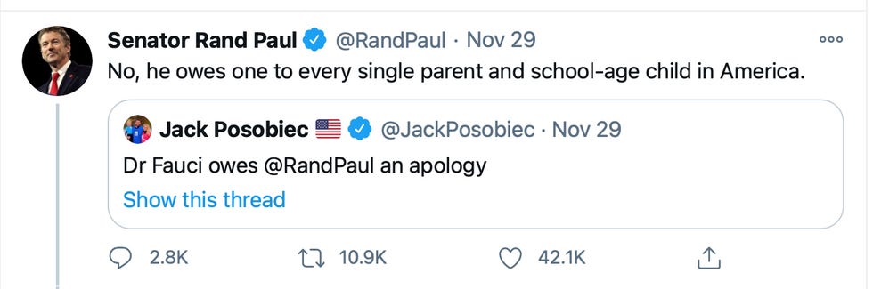 Rand Paul Wants Dr. Fauci To Apologize For Being So Goddamn Right All The Time