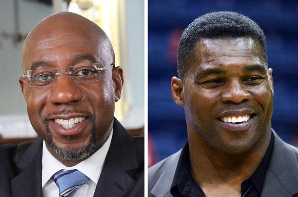 Rev. Warnock is the pastor of Atlanta's Ebenezer Baptist Church, where Martin Luther King used to be the pastor. And Walker is a former football player who thinks climate change involves China sending its bad air to the USA to take our good air away.