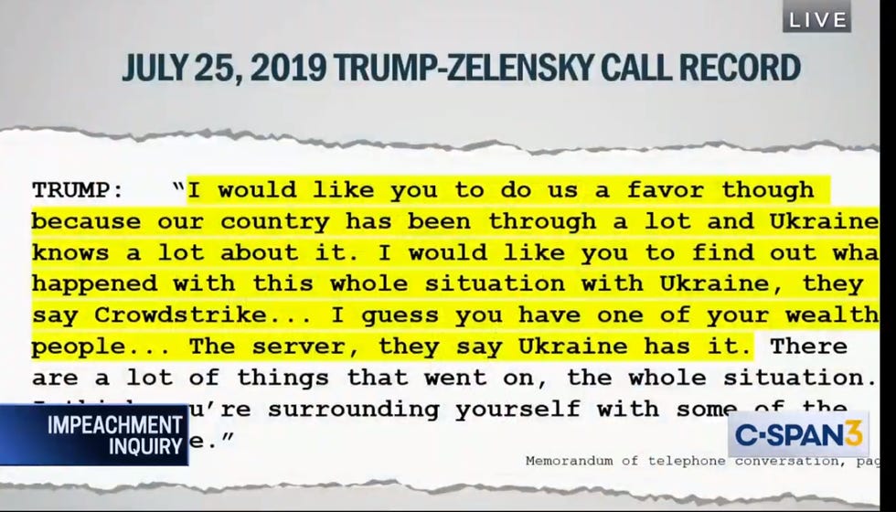 10: 09:Schiff's opening statement lays out the stark case, the reason why we're impeaching the motherfucker. Notes that the "facts of the inquiry" in this case aren't even really contested. This is what happened, as we wrote yesterday: