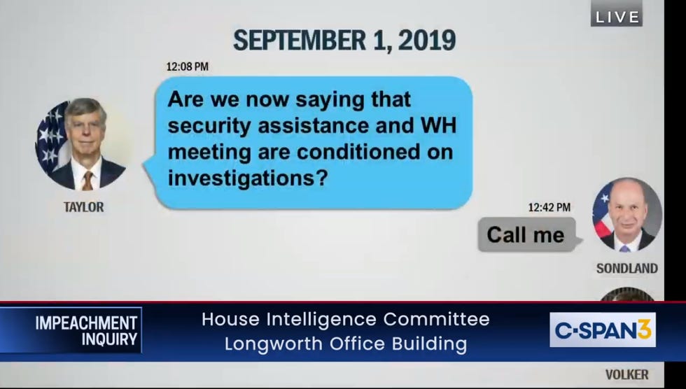 11: 50:Text from Taylor to Gordon Sondland on September 1, asking ARE YOU FUCKING KIDDING? To which Sondland replied "CALL ME."