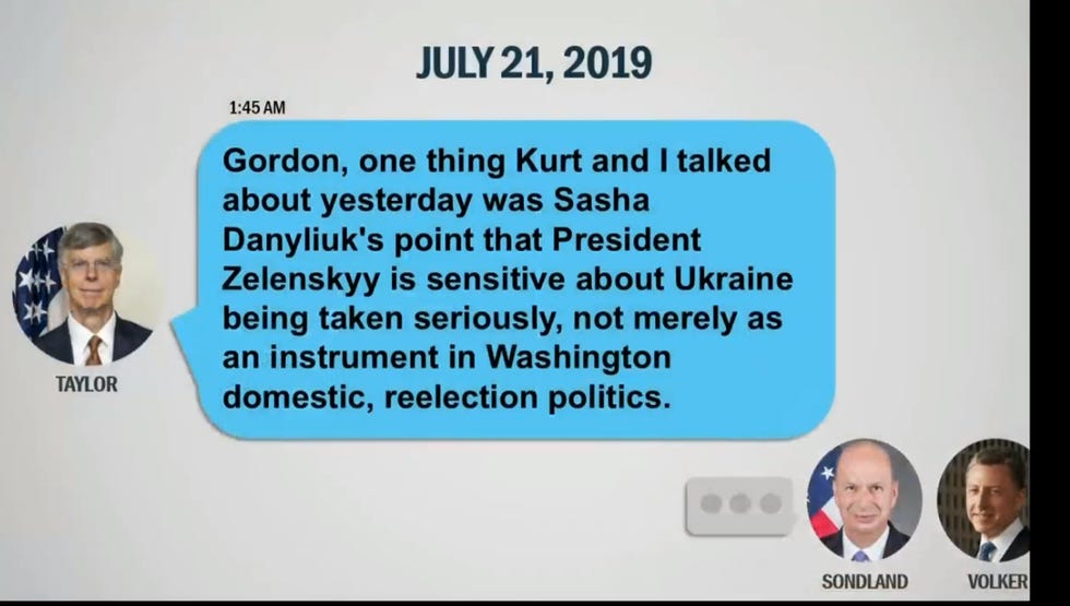 4. Withholding military assistance from Ukraine to bribe/extort them into doing fake investigations into political opponents is fucking crazy, like he said in his texts and in his earlier deposition.