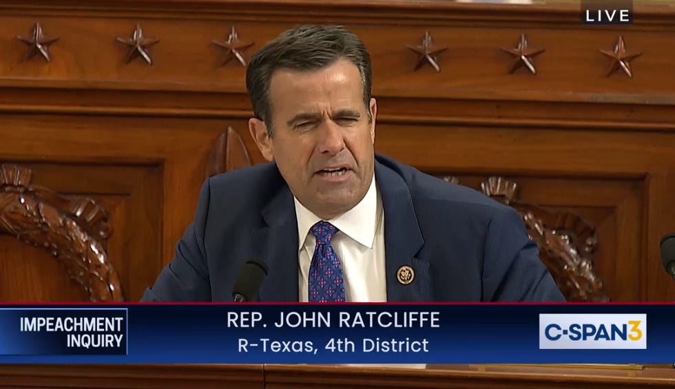 10: 07:Oh good, the clown show has begun. GOP. moron John Ratcliffe has "parliamentary inquiry."
