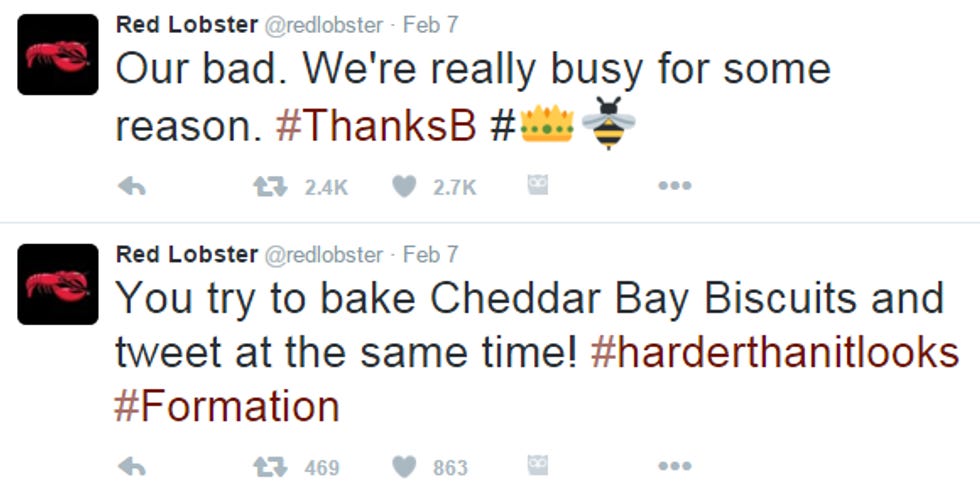 Red Lobster's social media person has been hitting on Beyoncé on Twitter ever since: