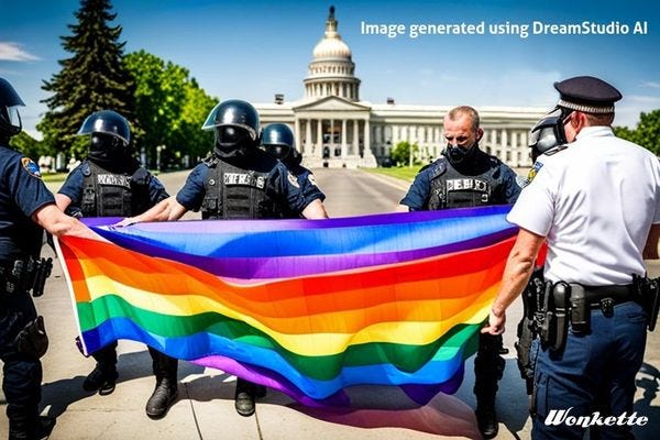 In a disturbing example of not just government overreach but near-illiteracy among Republican officeholders, seven attorneys general from red states sent a scary letter to the CEO of Target to warn the big-box retailer that the mere fact that it sold Pride-themed merchandise in June might somehow violate those states' laws against "obscenity," saying gay, and providing gender-affirming healthcare to minors. The letter originated with Indiana AG Todd Rokita, and cited numerous mostly fake claims in rightwing media to suggest that Target was doing sex crimes to minors simply by selling onesies with rainbow flags on them.