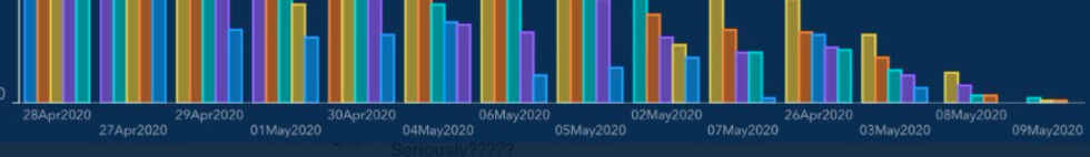 Ah, yes. April 28, followed by April 27, April 29, May 1, April 30, May 4, May 6, May 5, May 2, May 7, April 26, May 3, May 8, and then May 9. Totally normal calendar!