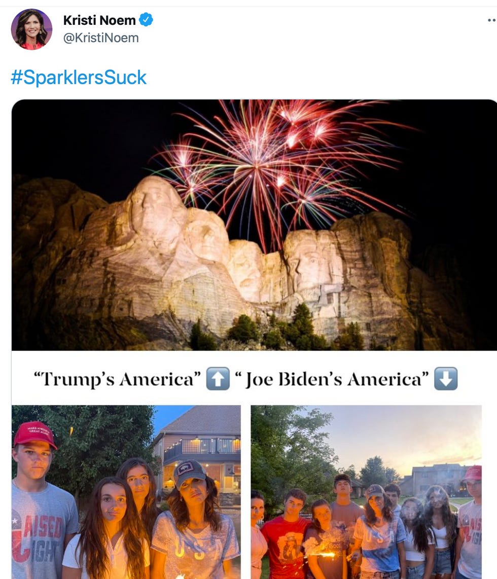For God's sake, lady, the temperature in Sioux Falls, South Dakota, was over 100 degrees on Saturday, and your state is also experiencing a drought. Can no one in your immediate circle science? Also, the fireworks display pictured from “Trump's America" took place in 2015, which was still Barack Obama's America or as we used to call it “America."
