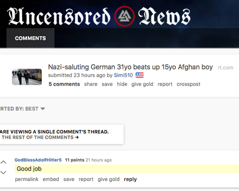 Also not included in the ban is another notorious hate subreddit, r/uncensorednews, which just recently cheered a Nazi who assaulted a 15-year-old boy.