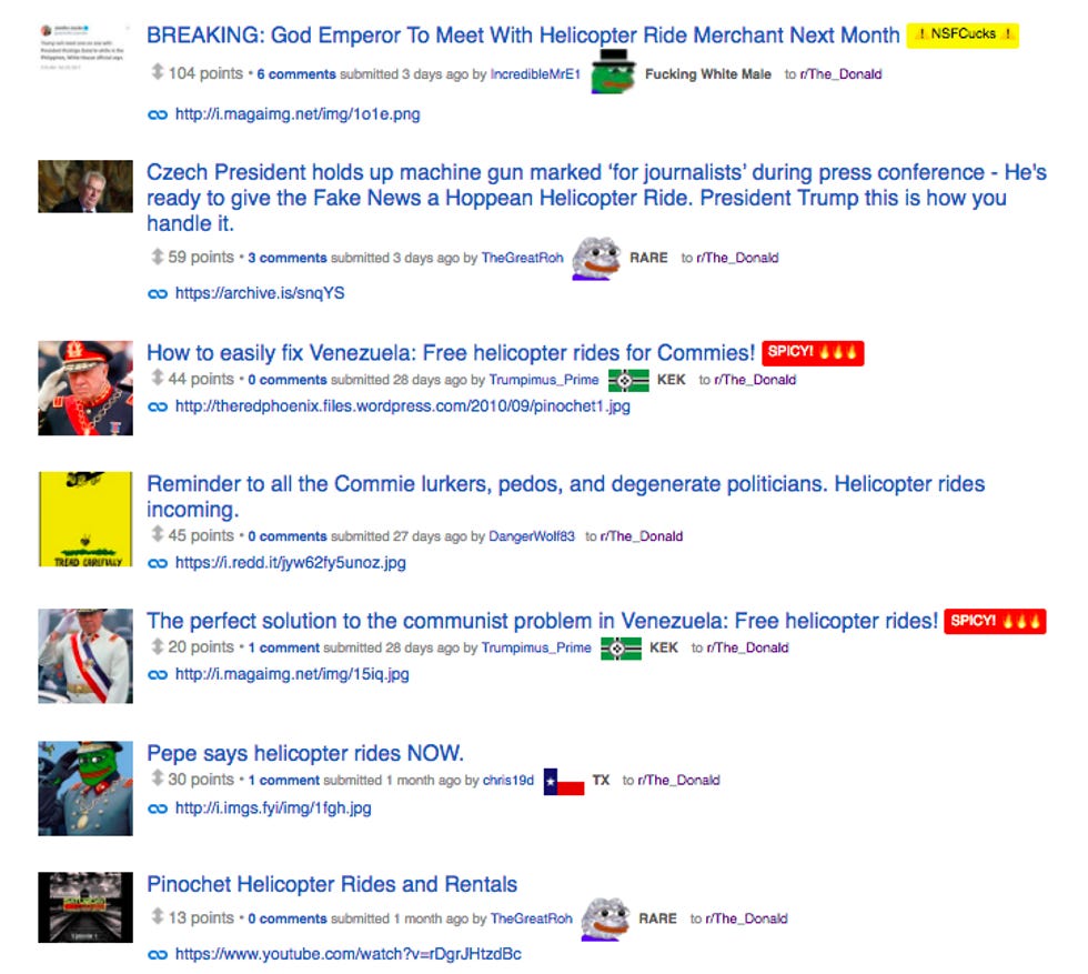 This refers to Chilean dictator Augusto Pinochet's charming habit of getting rid of people he didn't like by throwing them from helicopters. The alt-right, in case you were not aware, is very fond of Pinochet.