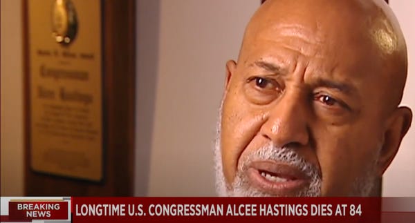 The Senate easily convicted Hastings, but did not ban him from holding future elected office. Maybe they assumed it wasn't necessary, but Hastings, standing in the rubble of his judicial career, was undaunted. He announced a run for Florida governor on the very day he was removed from the bench. That didn't work out. Neither did a run for Florida secretary of state in 1990.