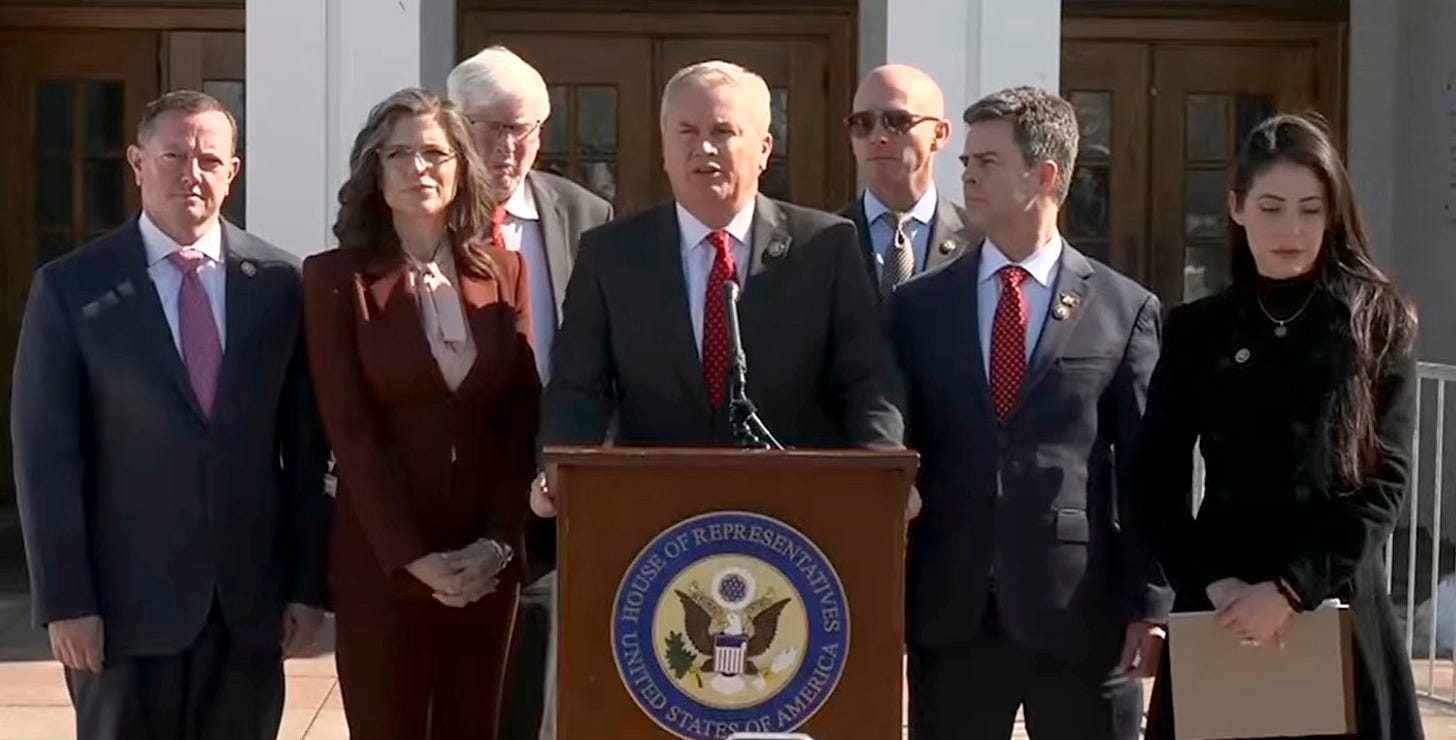If you take a shot at the king you best not miss, but Billary are No Kings, and they have nothing to hide, at least as far as Epstein is concerned. And the Clintons could have — and since last summer seriously did — consider telling Comer to shove his demand up his subpoena-hole, and dare him to nut up and try to arrest them. But they did not, they looked James Comer right in his jowls and were like, oh, have you come to snuff the rooster again? Okay, for the gazillionth time, and as you already know, we did not hear or see any Epstein rapey business or go to his sex island, and PS. fuck you for dragging Hillary into it!