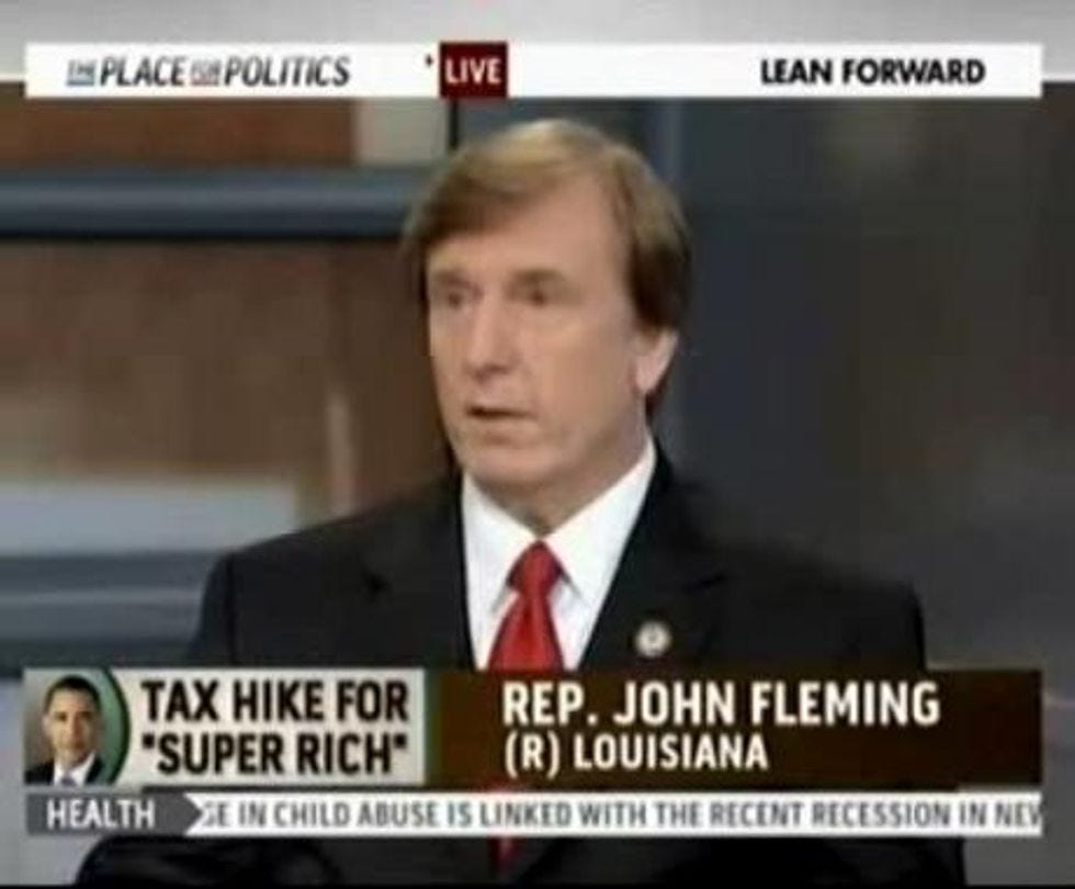 Oops! He has now deleted this Facebook wall post because it made him "seem like" an idiot. Here's a picture of Rep. John Fleming, from the TeeVee: