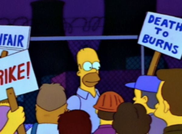 Ha ha, America sucks at protests, probably because there are no hamburgers involved. Thank you brave "Nick B." union thug!