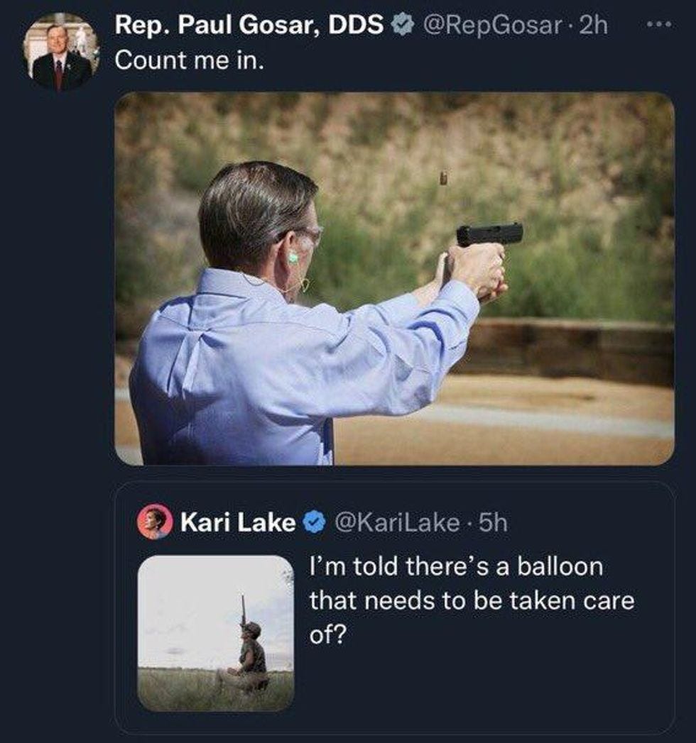 We all had fun here with the Chinese Balloon Saga . We even had a good laugh at some Republican kooks' pathetic attempts to look tough as they literally yelled and aimed weapons at the sky.