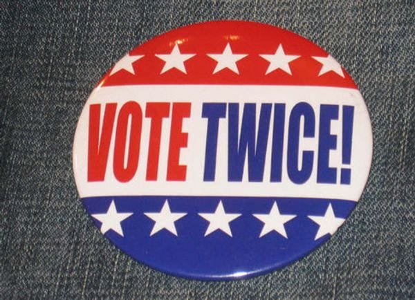 Yeah, the "going up right behind them" part is already illegal, dickhead. Incidentally, right in this goober's home state, the secretary of state of Ohio is a Republican, Jon A. Husted, who doesn't see all the dirty dirty fraud Trump voters are so certain of. Then again, he's part of the establishment, now isn't he?