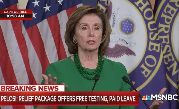 Again, we're not entirely sure what he's getting at with the that "nothing to do w/ coronavirus" stuff. The bill guarantees insurers will cover testing, and for people without insurance, it would pay for the tests. It also increases the federal share of Medicaid funding by eight percent to handle likely increased case loads.