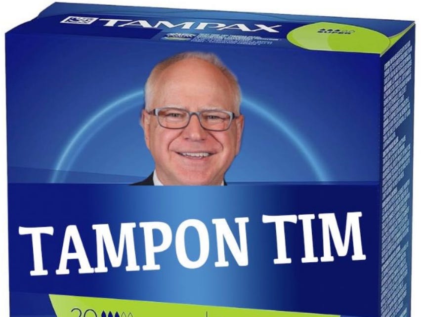 The main thing Republicans came up with, however, was #TamponTim, in which they are all railing against the fact that Walz signed a bill that would subsidize menstrual products at schools — which makes sense not only as a way to combat period poverty, but also because, you know, sometimes you get your period at school and you don’t have a tampon or a pad. Girls often don’t have regular cycles until a few years in, so … oh my God, I should not have to explain this! It’s a great thing that he did! 10/10, no notes.