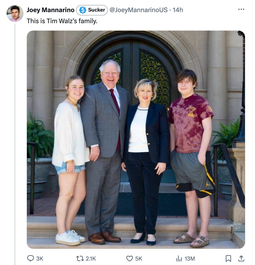 Like this picture of Tim Walz with his family!