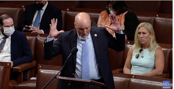 Vaccines are most effective with a collective effort from the public, but that sounds too close to socialism for the GOP's comfort. Rep. Chip Roy from Texas complained about the mask mandate on the House floor, with a maskless and mindless Marjorie Taylor Greene sitting behind him.