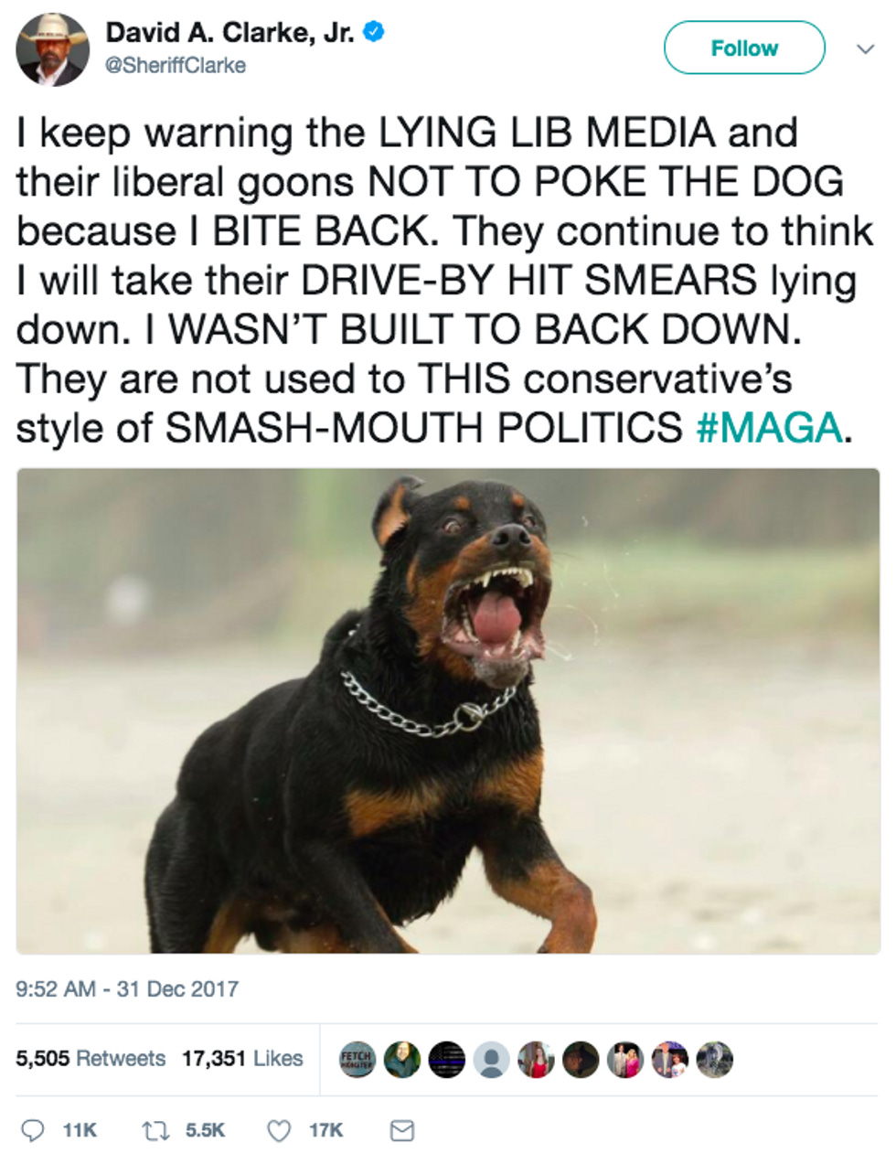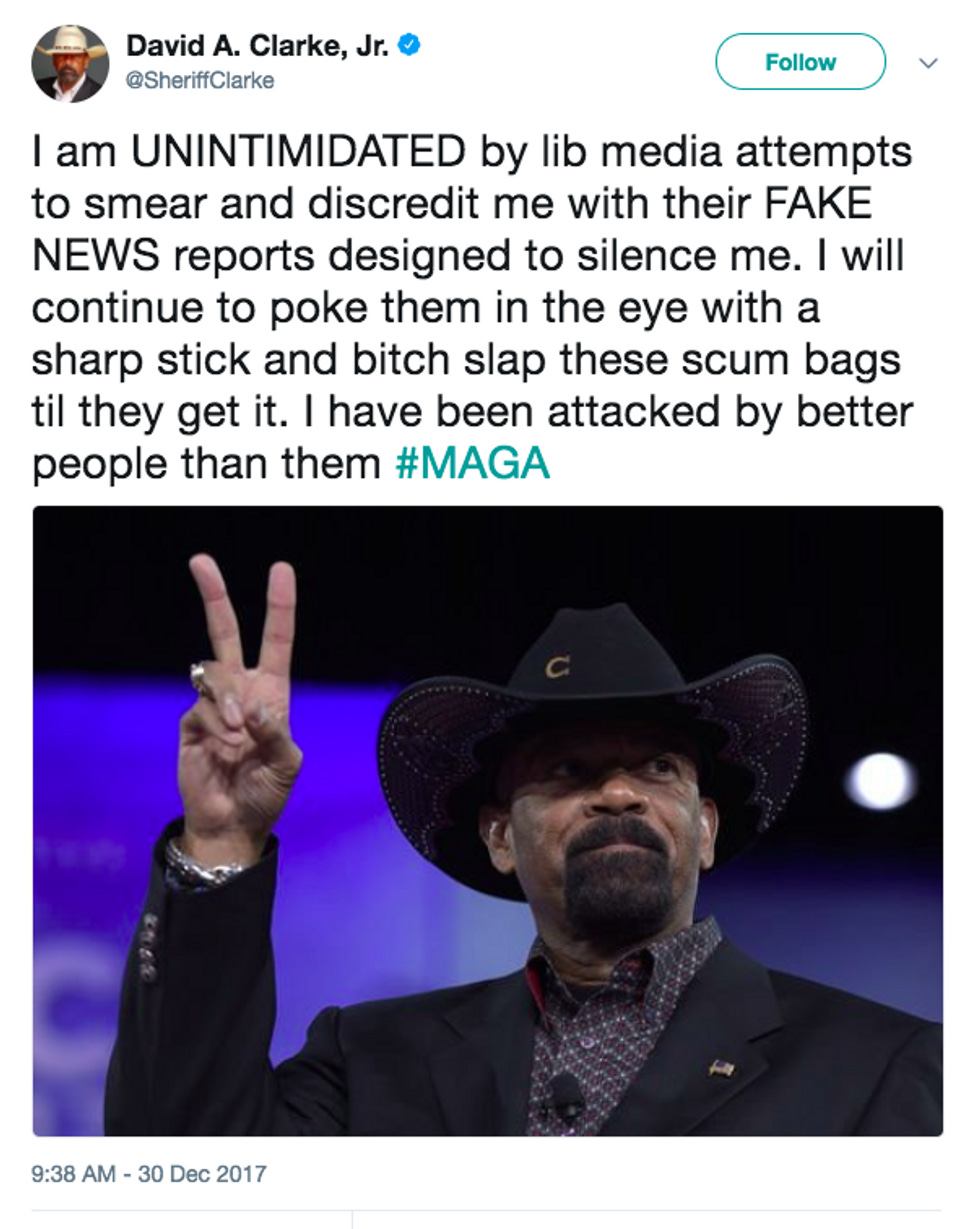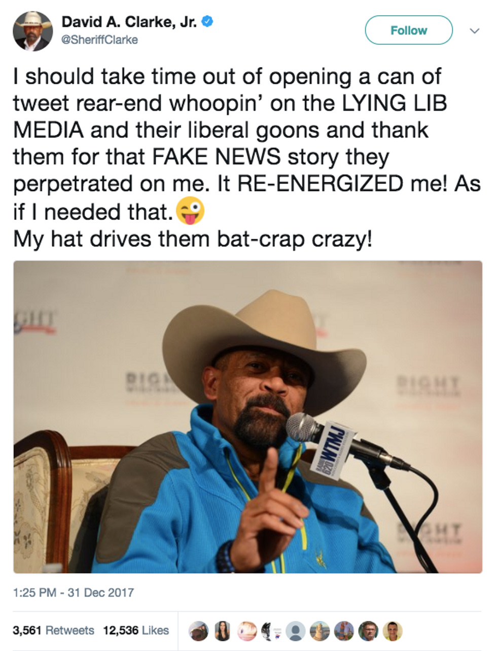 — David A. Clarke, Jr. (@SheriffClarke) December 31, 2017