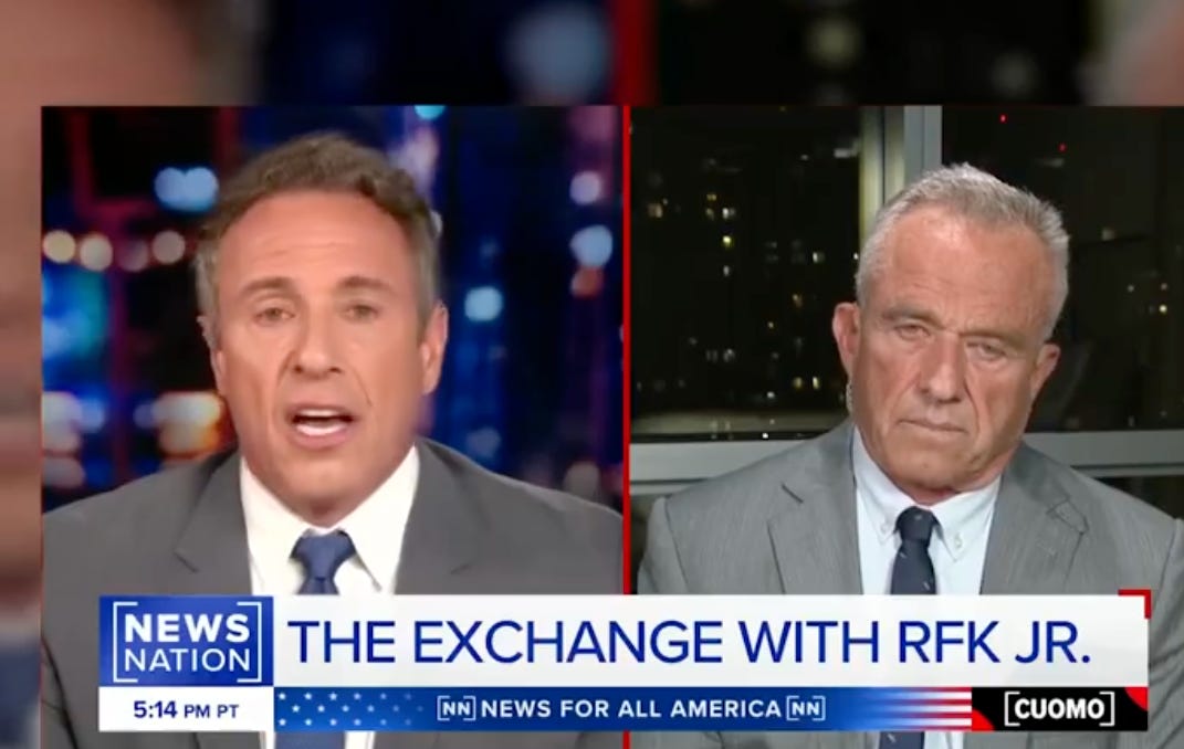 In that clip, NewsNation host Chris Cuomo — yeah, yeah, we know — confronts Kennedy on his history of batshit 9/11 trutherism, his “just asking questions” about what really happened. Kennedy never knows what you’re talking about when you refer to his past craziness. He lies to Cuomo, saying he’s never voiced a conspiracy theory about 9/11. The clip ends with the receipts, the audio of Kennedy in the exact interview Cuomo was referencing, babbling his “just asking questions” about why Building Seven fell.
