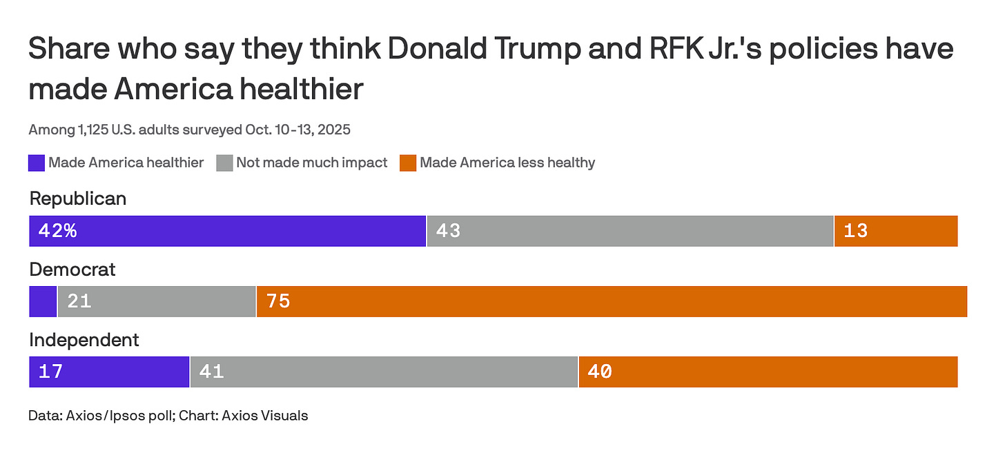 On Thursday, Axios released a poll that found that a majority of Americans do not believe that the policies of Donald Trump and Health and Human Services Secretary Robert F. Kennedy Jr. have made America healthy. In fact, only 42 percent of Republicans said that they believed this.