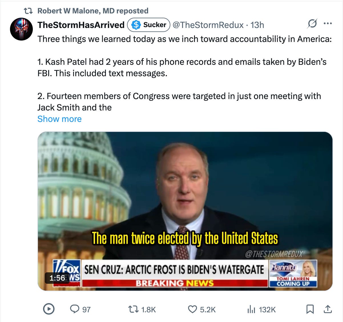 “It is good that Dr. Malone wishes now to decrease drama regarding vaccines,” Hibbeln added, though we assume he is aware that Dr. Malone wishes to do no such thing.
