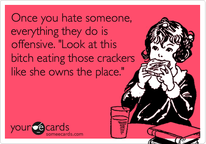 One thing I’ve learned not to do over the years is to work out vendettas in my writing, and not to write about things and people that I am too “bitch eating crackers” about. It’s something I think everyone ought to be aware of, whether they’re a writer or not. We get so mad about or irritated by one particular thing, person, group of people, idea, belief, take, etc. that we see it or them as exemplifying everything that is wrong in the world. Perhaps even the cause of it.