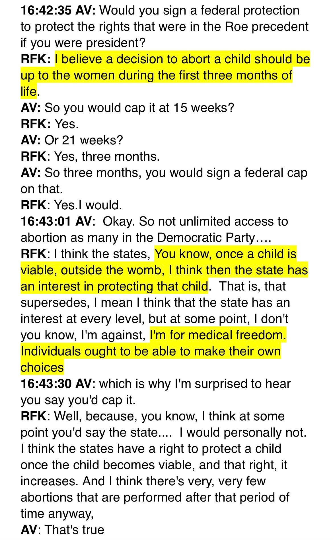 The exchange was very straightforward, and Vitali gave Kennedy multiple opportunities to give a coherent answer that reflected his understanding of the question asked of him. So it’s weird, then, that hours later, the Kennedy campaign (which is a totally real thing) released a statement saying oh, the candidate was just very confused and does not support any abortion bans.