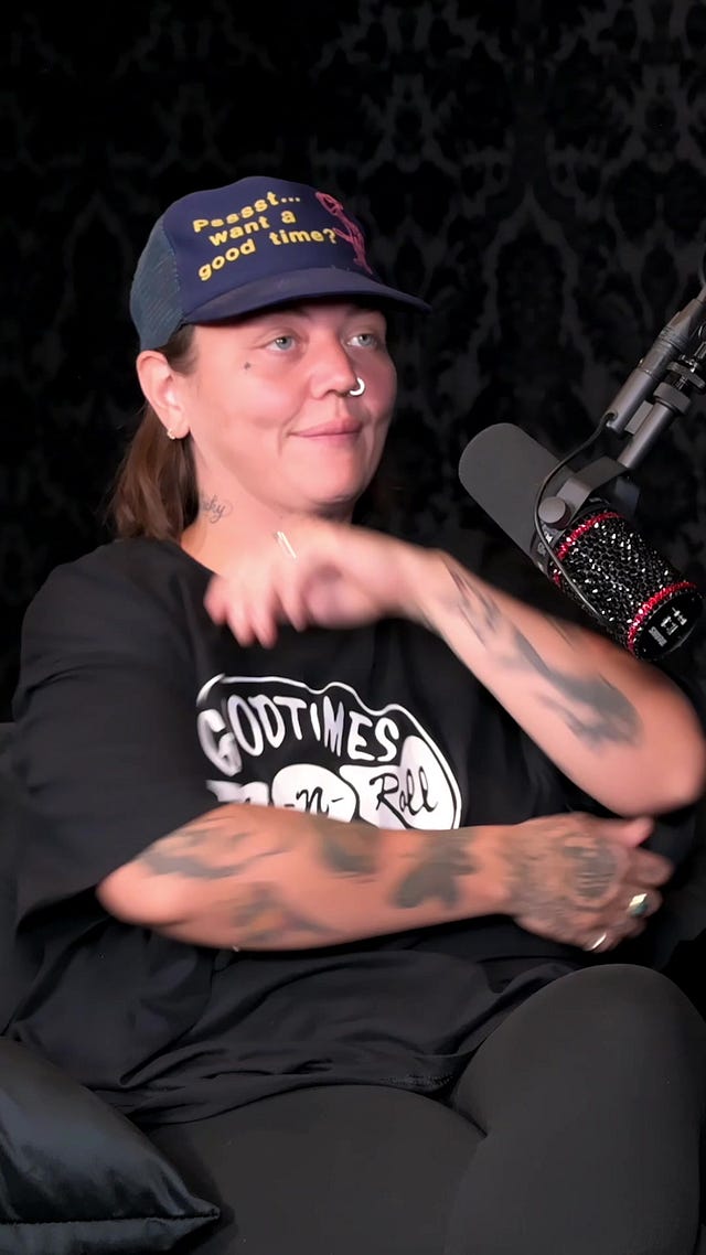 He also made her wear sweaters during the summer at these camps, because she had already started getting tattoos at that point, because he was “very, very anti-tattoos or, like, any form of self-expression that differed from what he wanted.”