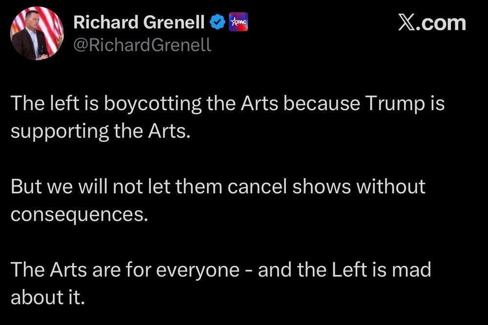 Ric Grenell Throws Tantrum Over Canceled Kennedy Center Concert, Other Acts Quickly Cancel As Well To Spite Him