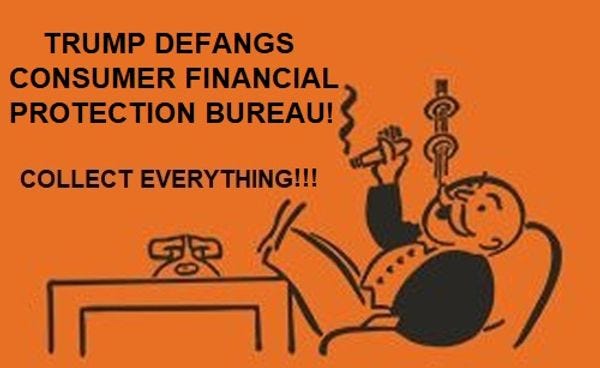 Now we can look forward to a lot more scams like Wells Fargo's scheme to create unwanted accounts (and monthly fees!) for customers who never wanted them, and there'll be no real watchdog to meddle in the holy mission of extracting as much money from consumers as possible.