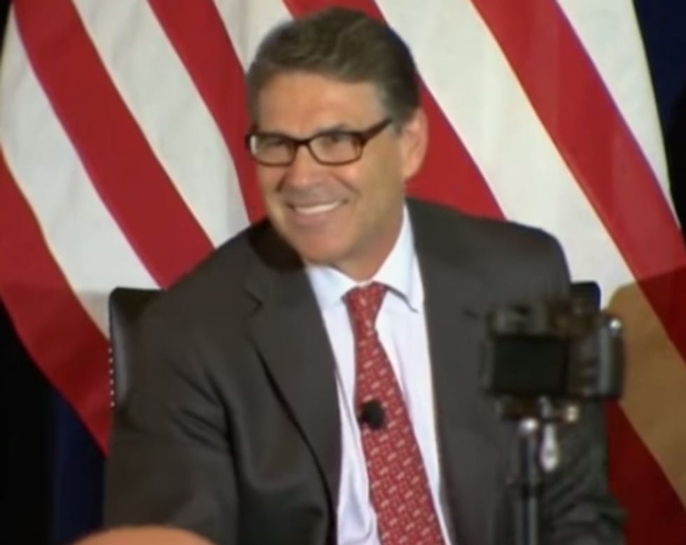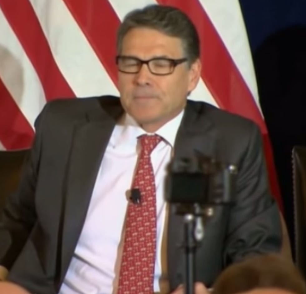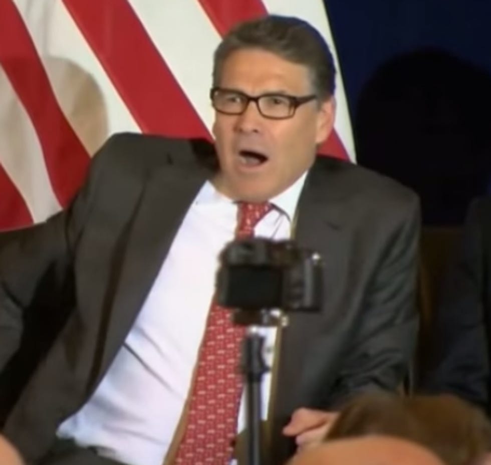 Then he leaned back because he started to get that well-known Rick Perry Texas Erection: