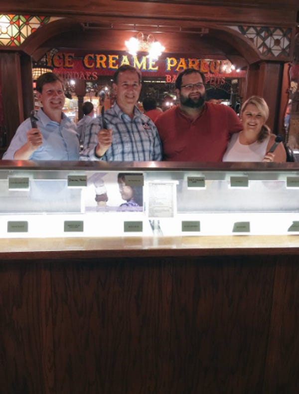 Rick Santorum, whatcha doin'? Just hangin' out in Tennessee with your best bud (state Senator Brian Kelsey, who's running for big boy Congress)? And you want something shoved and rammed and crammed into your throats? Oh, it's just ice cream? Well, can't make anything dirty out of that.