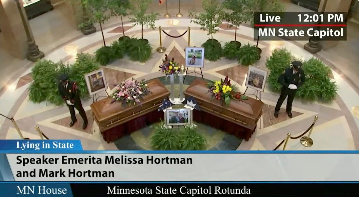 Hundreds of people gathered in Minneapolis on Saturday for the funerals of Minnesota Democratic state Rep. Melissa Hortman, her husband Mark, and their dog Gilbert, after a Trump-loving MAGA maniac terrorist assassinated them on June 14, leaving their two adult children, Colin and Sophie, without parents. The assassin also seriously wounded Democratic state Senator John Hoffman and his wife, Yvette, who are still in the hospital.