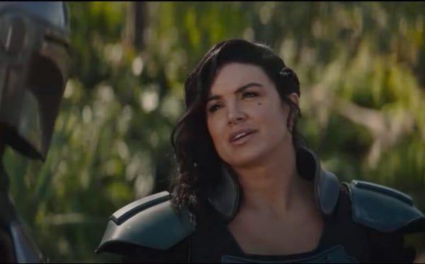 Last night, it was announced that actress Gina Carano would not be appearing in the third season of "The Mandalorian" on Disney+ following the latest in a series of offensive posts on social media — in this case, an Instagram post in which she compared Republicans to Jews during the Holocaust (did someone send out a memo?) .