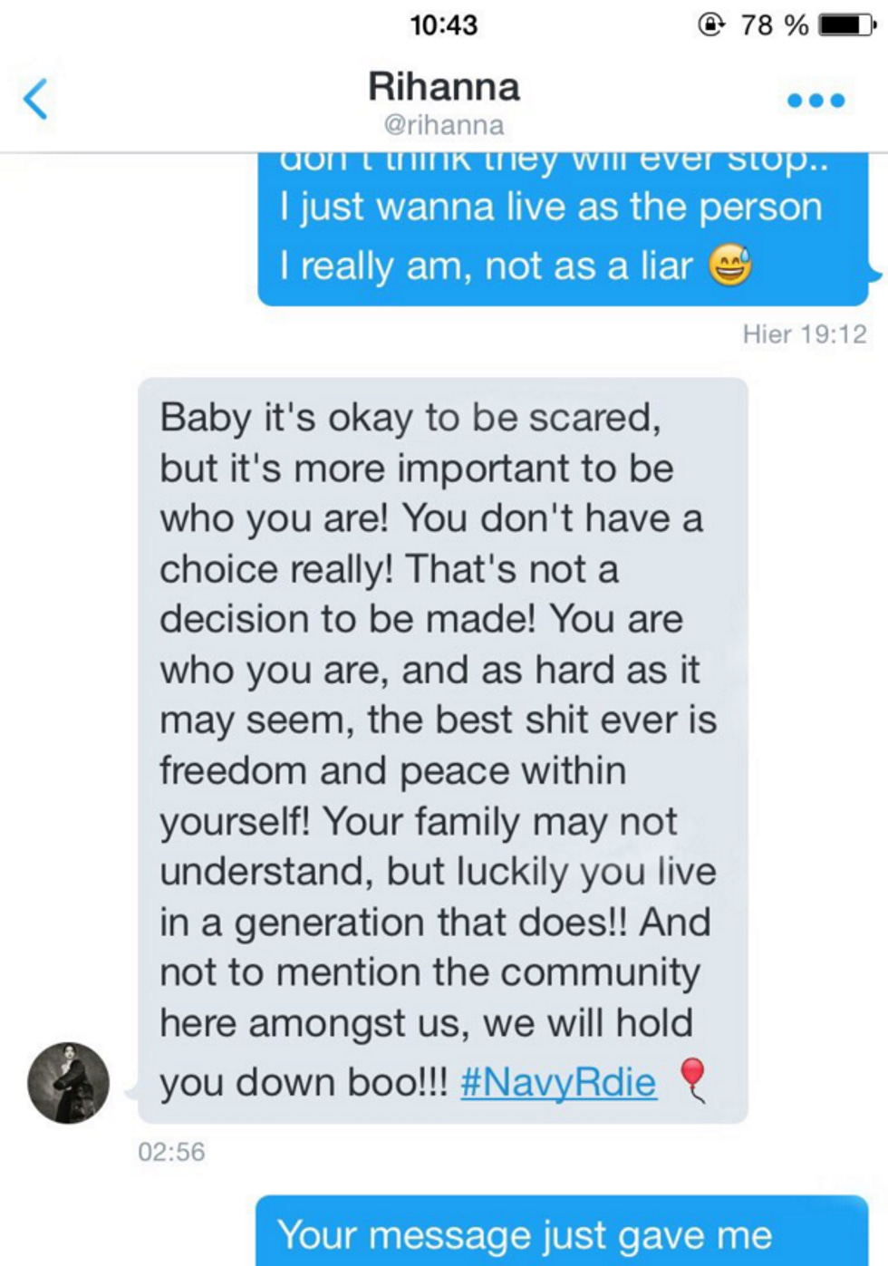 In the last couple screenshots we have, we see Rihanna being like "No thank YOU" for being one of the many people who has supported her career, etc., and so on, ALL THE FEELS: