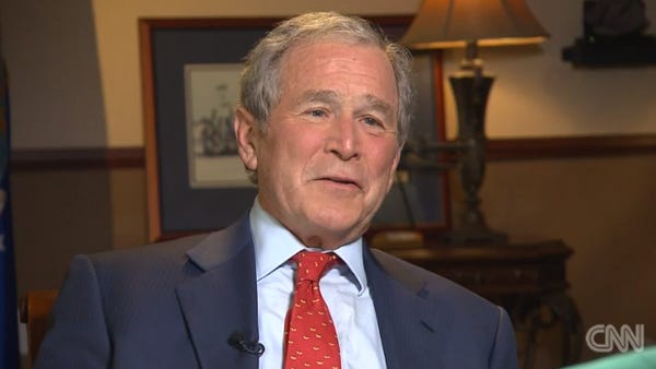 George Dubya gave an interview on CNN and said some stuff. Like how when he heard about the grand jury in New York refusing to indict the cop who choked Eric Garner to death, it made him "sad that race continues to play such a, you know, kind of emotional, divisive part of life." And how if his brother Jeb runs for president, he will SO full-on win. And also how it was a real comfort to him sometimes, when he was president, that his daddy had been president too, because his daddy could, like, totallyget it, man.