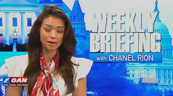 Which is exactly the LOLsuit you'd expect from a network which made Chanel Rion a "star" by flogging every election fraud conspiracy or bit of COVID misinformation crapped out of the ass-end of 4chan. Remember that time when Rion claimed that octogenarian philanthropist George Soros was tailing her around Ukraine as she and Rudy Giuliani pursued the "truth" about President Joe Biden and his son Hunter?