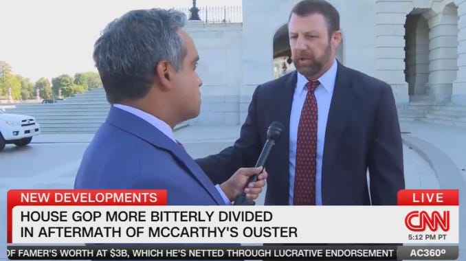When Anderson Cooper finished showing that clip, he clarified that Gaetz was never charged with any sex trafficking crime, and read a statement from Gaetz saying that “I don’t think Markwayne Mullin and I have said 20 words to each other on the House floor. This is a lie from someone who doesn’t know me and who is coping with the death of the political career of his friend Kevin. Thoughts and prayers.”