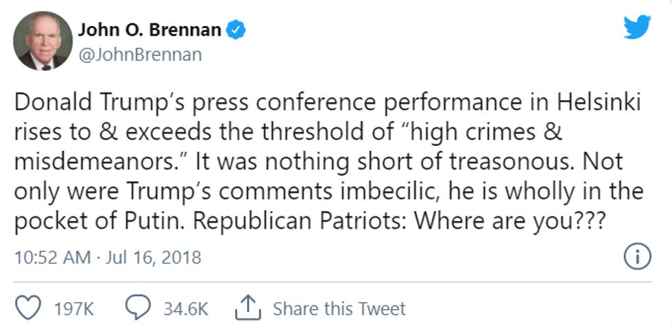 Also Trump said some unintelligible bullshit about Peter Strzok, immediately before he and Putin ran away together into the Finnish evening to do whatever dictators and their intelligence assets do for a fun night out in Helsinki.