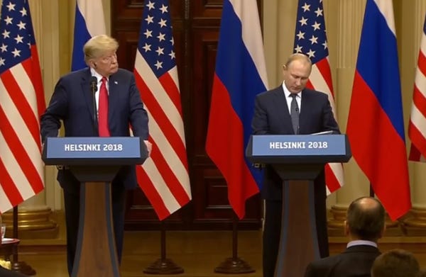 Let's get in the Wonkette Time Machine. Let's reprint the article we wrote about the joint presser Trump and Putin did that day after God Knows What happened between them behind closed doors. (By the way, Wonkette will be liveblogging President Biden's press conference later this afternoon. Putin won't be in attendance at that presser, because the current American president recognizes that Putin doesn't deserve the honor.)